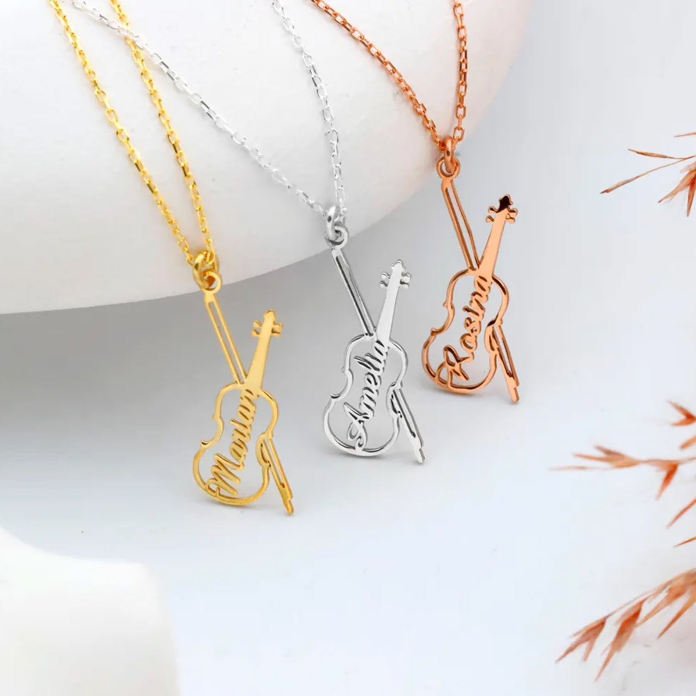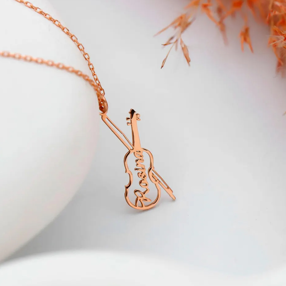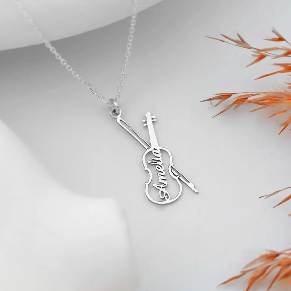Custom Name Engraving – The violin’s body is beautifully engraved with a personalized name—creating a meaningful tribute to the wearer’s passion. The elegant design enhances the charm, making it a unique keepsake that celebrates individuality and love for music.