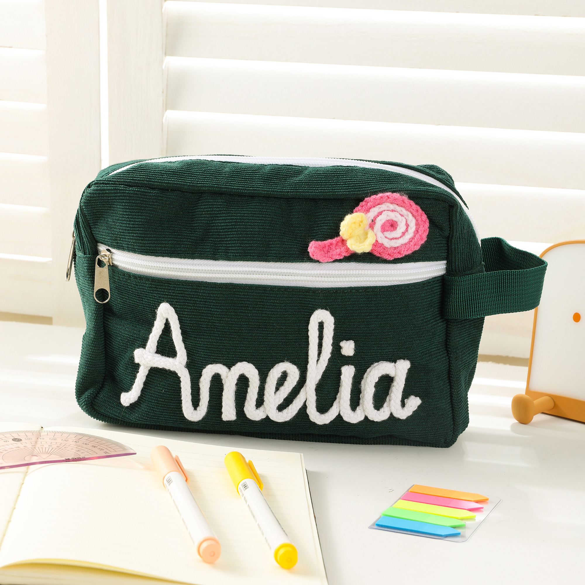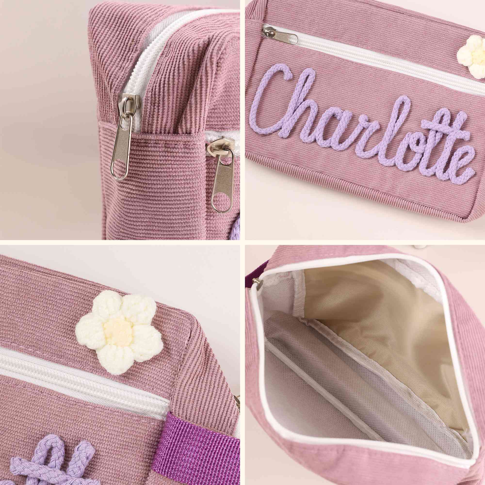Fun and Playful Design - This personalized corduroy pencil case comes with adorable decorations such as flower, butterfly, or lollipop, giving each bag a cheerful and youthful touch. The soft, pastel color tones and cute patterns add personality and warmth, perfect for those who love stylish and creative accessories.