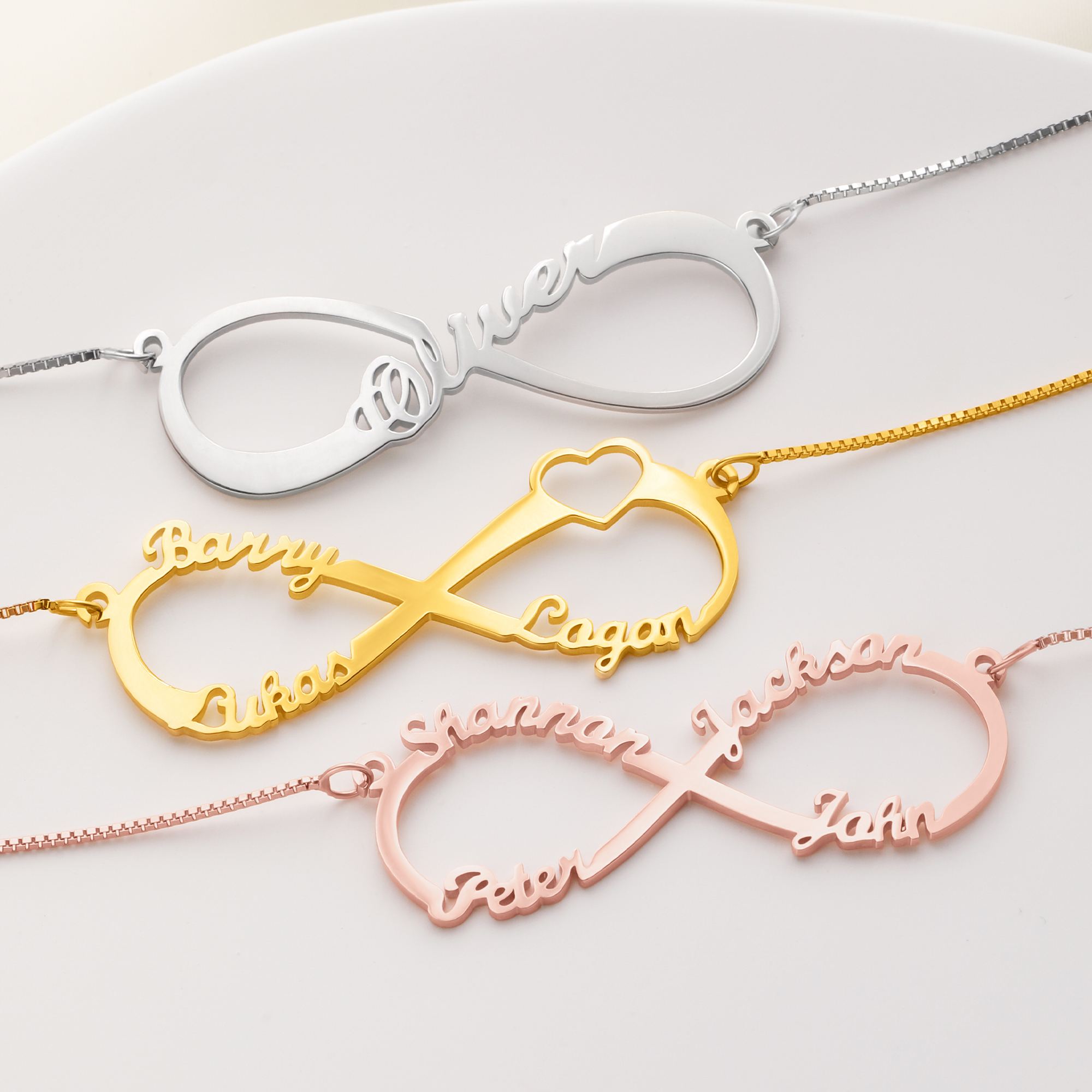 This personalized infinity necklace is an ideal gift for partners, family members, or friends. It beautifully expresses love and connection, making it a cherished piece that will be treasured for years to come.