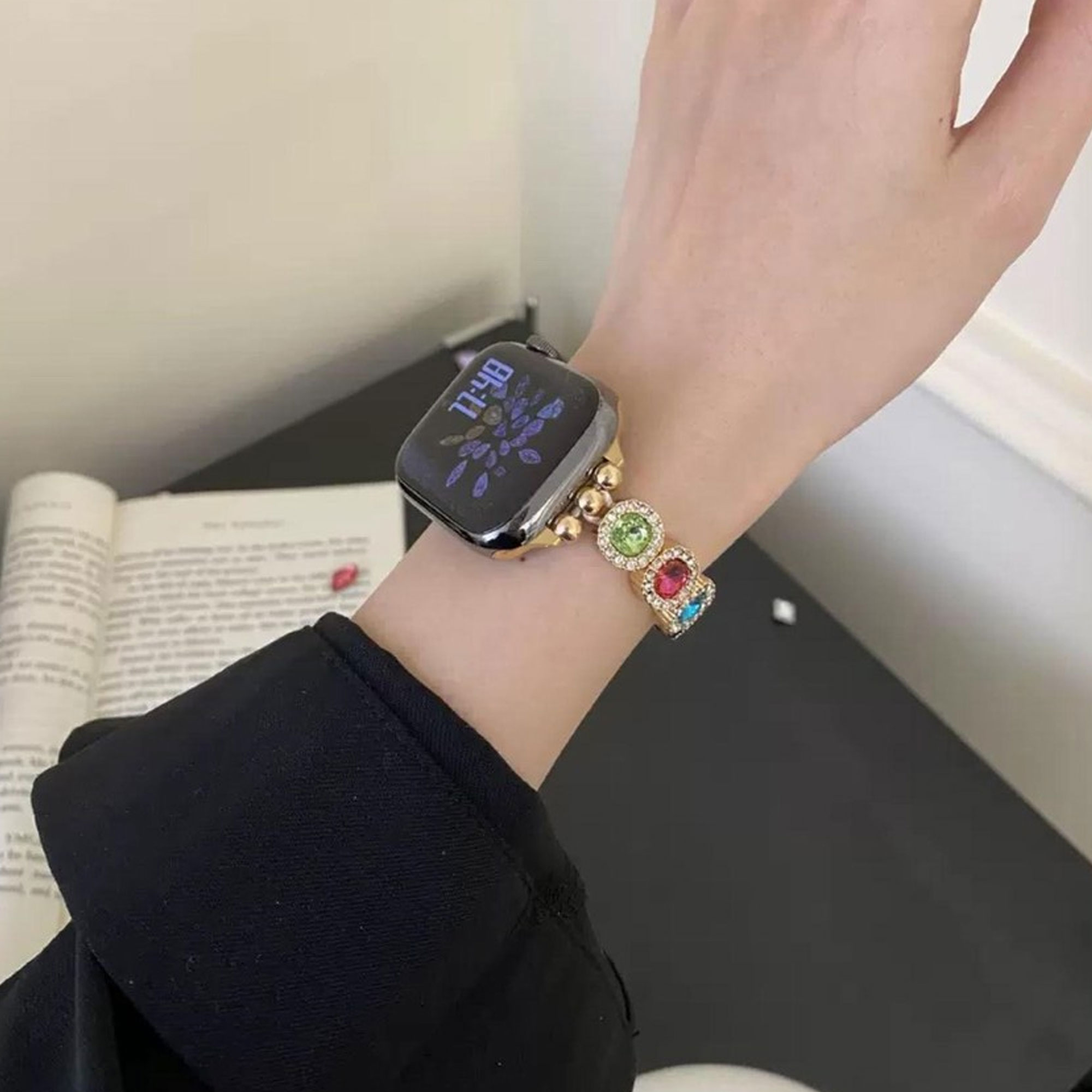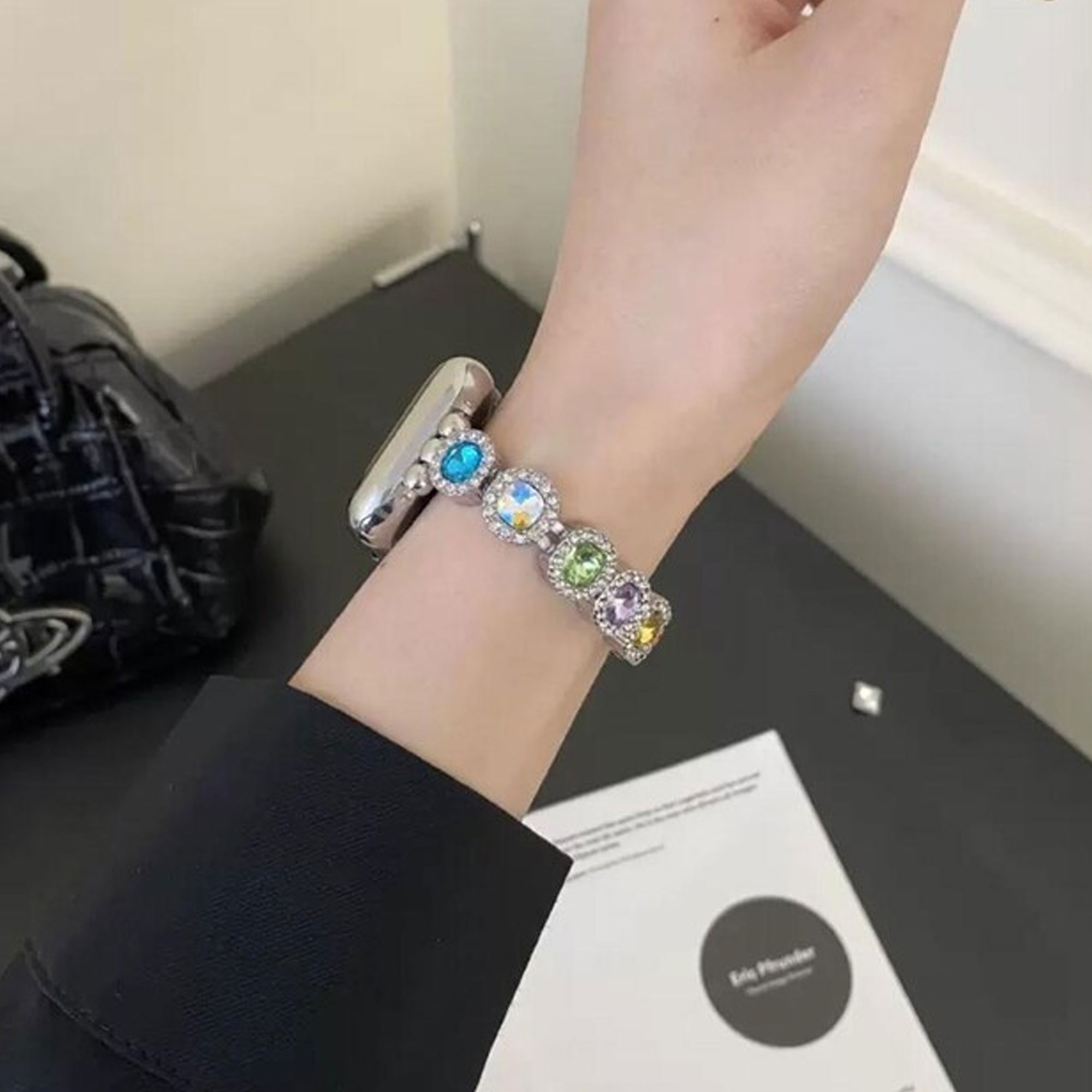Vintage Rhinestone Apple Watch Band, Colorful Gemstones Elastic Charm Bracelet, Fashionable Smartwatch Strap, Watch Accessory, Gift for Her/Friends